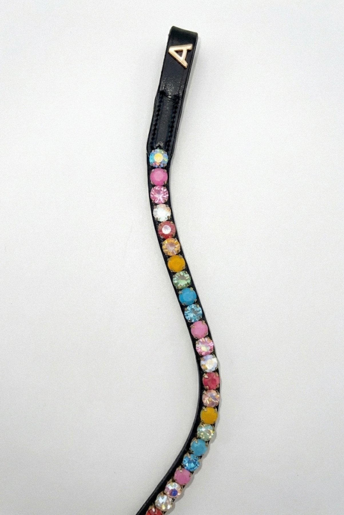 Featuring a gracefully curved shape, the browband follows the natural contours of the horse’s forehead for a comfortable fit, while the high-quality crystal stones catch the light beautifully, available in a variety of colors to suit your personal style. The secure stitching and premium materials ensure the browband retains its shape and brilliance ride after ride, making it a reliable addition to your tack collection.