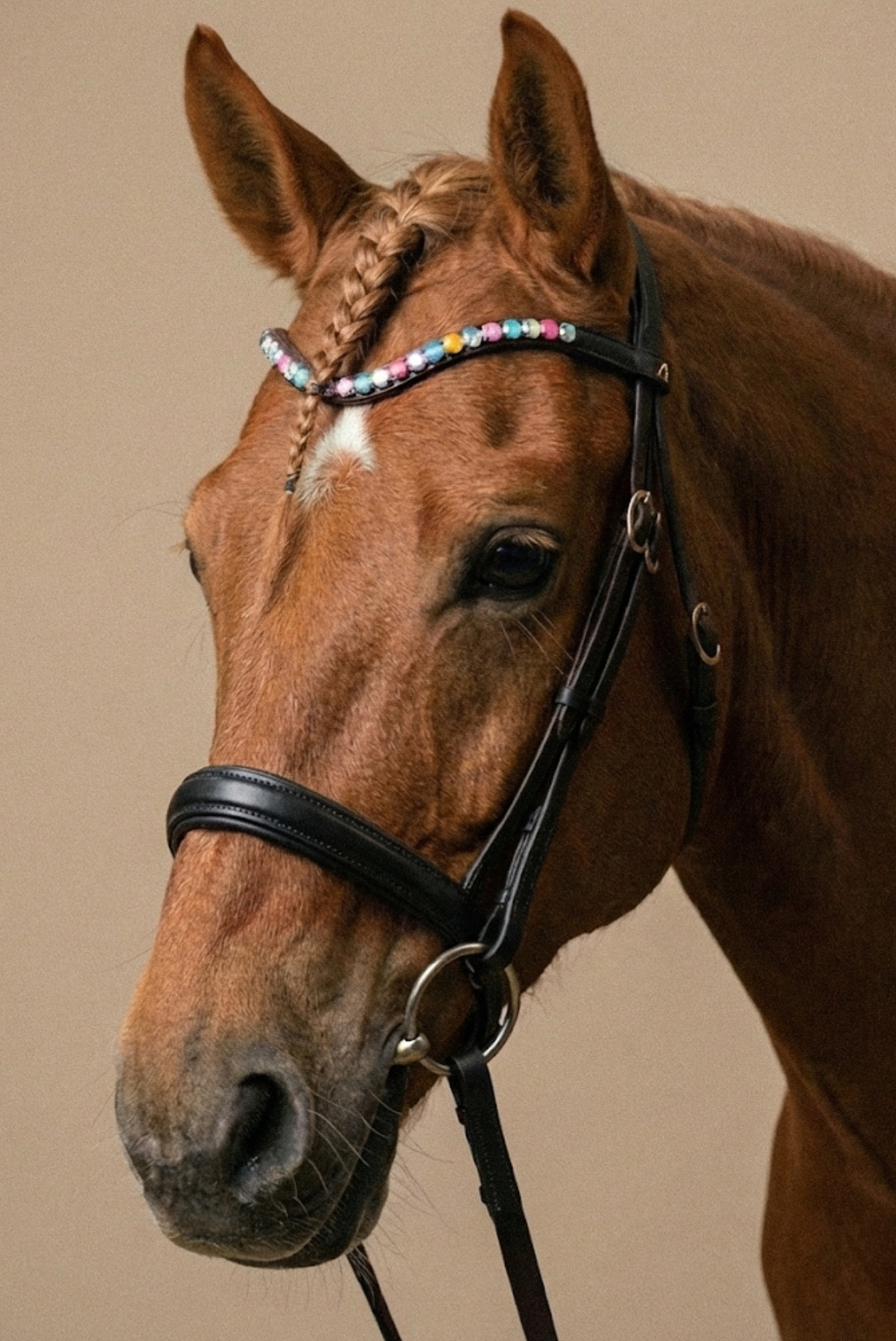 Add a touch of refined elegance to your bridle with the Amiko Browband Crystal Bent. Designed for riders who value both style and functionality, this browband combines durable craftsmanship with sparkling details that enhance your horse’s presence in the arena.