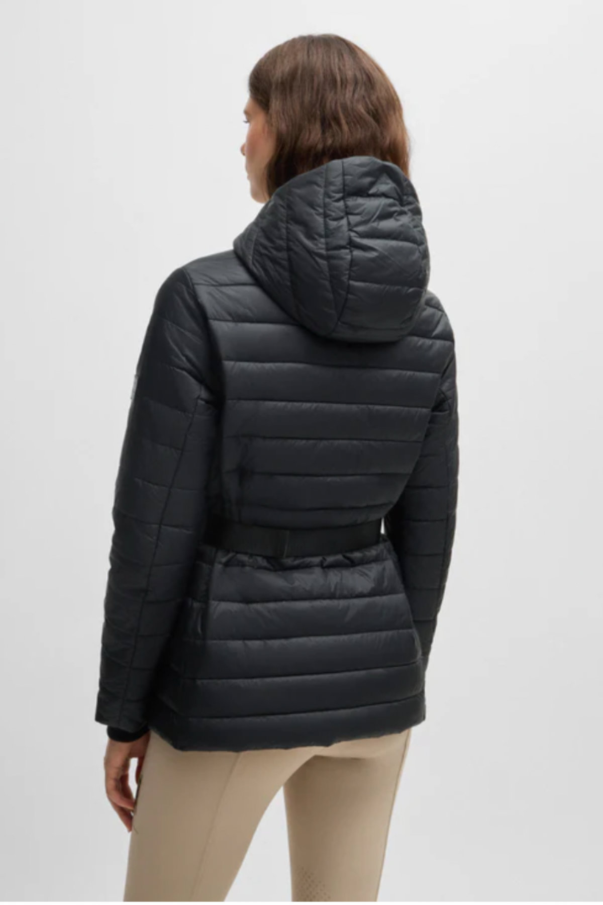 Light padding provides gentle insulation without bulk, allowing for ease of movement both in and out of the saddle. A waist belt subtly defines the shape, while the front zipper and zippered pockets offer practical functionality for everyday wear. Finished with a BOSS Equestrian logo patch on the left sleeve, the jacket reflects understated branding and timeless style. Crafted from durable polyamide with a soft polyester filler, the Wanda jacket is a reliable companion for changing conditions.