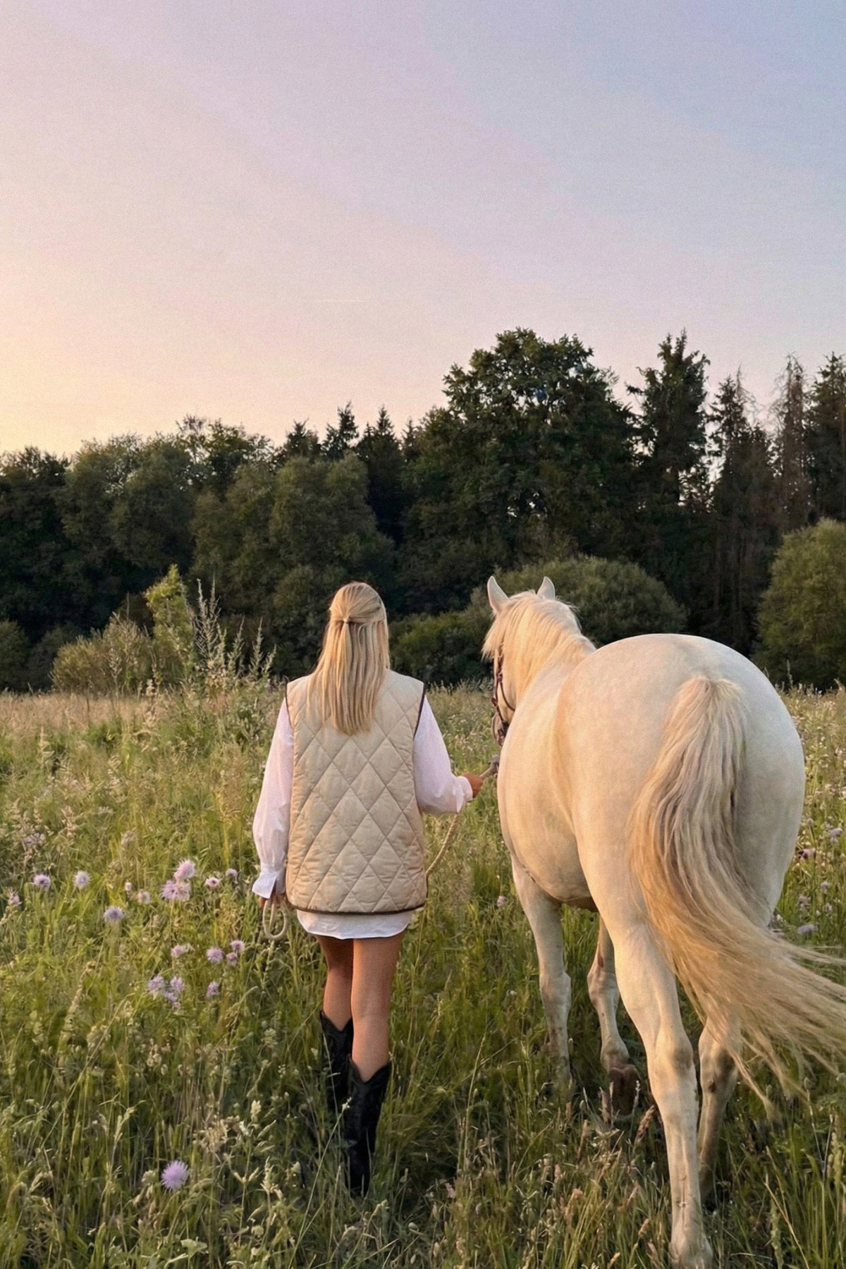 The Pomme Wednesday Vest is a versatile layering piece designed for riders who appreciate refined practicality and timeless equestrian style. Thoughtfully crafted to move seamlessly between stable life and everyday wear, it offers lightweight warmth without compromising freedom of movement.