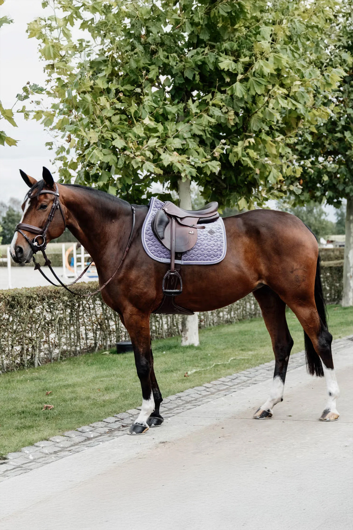 Elevate your jumping performance with the Kentucky Saddle Pad Velvet Jumping—a perfect blend of style, comfort, and functionality. Designed for riders who value both aesthetics and performance, this saddle pad features elegant star quilting and refined double twisted piping, giving your horse a polished, classy look in the ring.