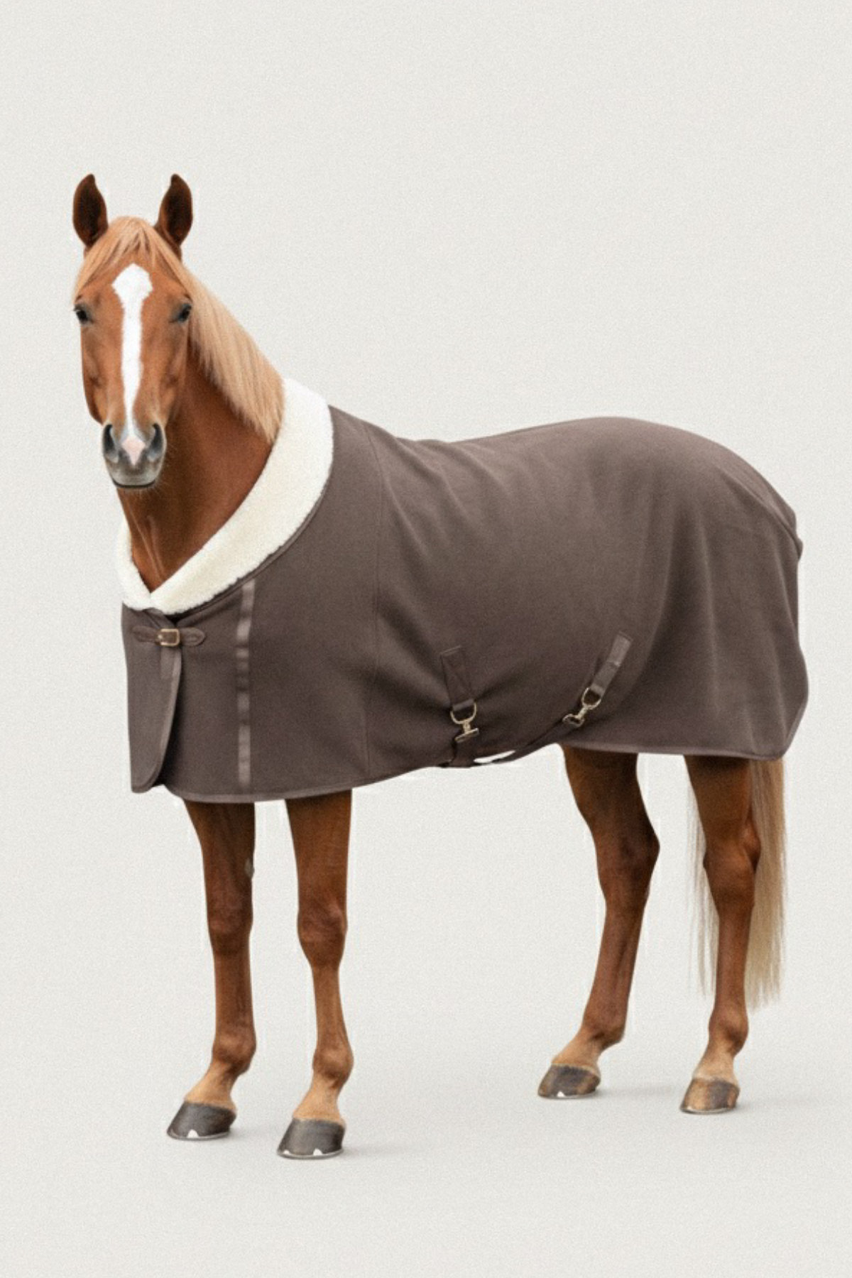 Amiko Essential Showrug with fur – a luxurious and functional rug perfect for keeping your horse warm and comfortable after training or bathing on colder days. This fancy Fleece Show Rug effectively absorbs sweat or water, ensuring your horse stays cozy and warm. The artificial sheepskin covering the entire neck and chest provides optimal comfort and a stylish look, making your horse stand out in the stable or at shows. Complete with leather buckles and removable belly straps. Treat your horse to the ultimate comfort and style with the Amiko Essential Showrug with fur, perfect for show days, travelling or use in the stable.