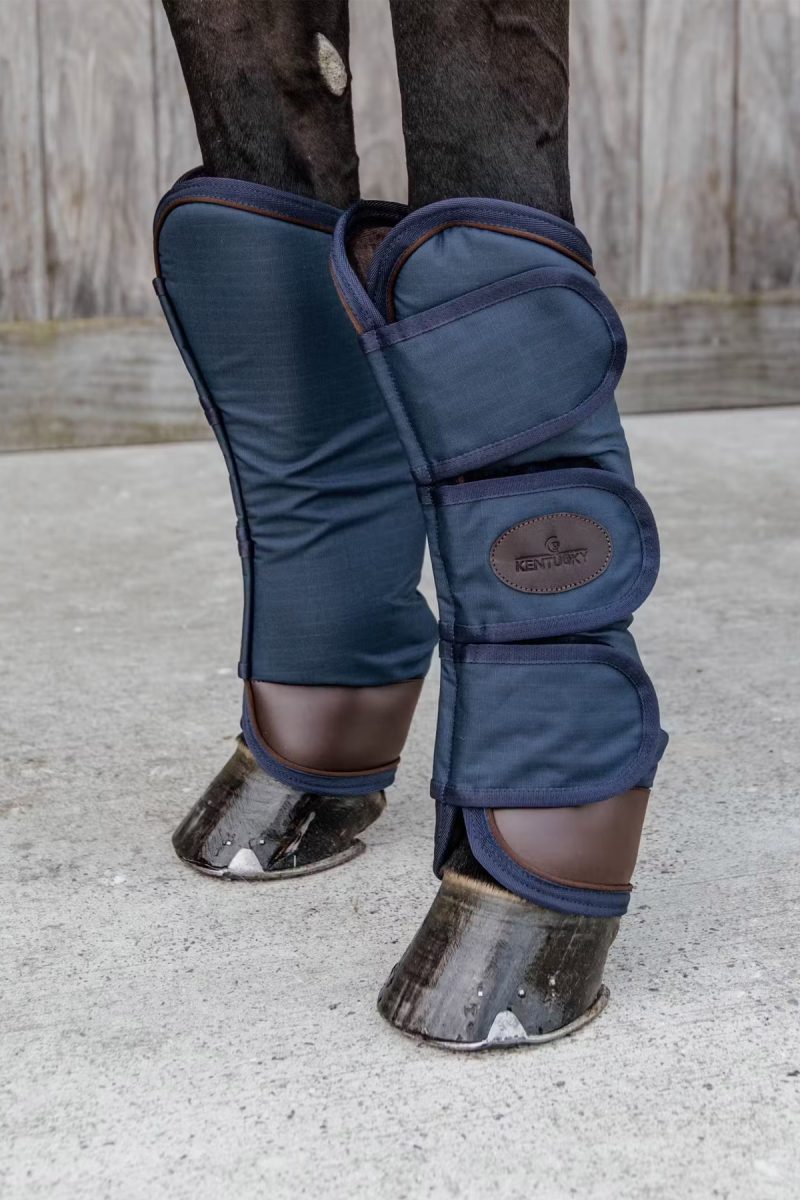 Made from durable 600D ripstop polyester, they withstand wear and tear while shielding your horse’s legs from bumps and knocks. The sensitive pastern area is reinforced with Kentucky’s signature artificial leather, while a shock-absorbing foam core provides reliable impact protection. Inside, the soft artificial rabbit skin lining regulates temperature and prevents rubbing, ensuring a stress-free experience for your horse during transport.