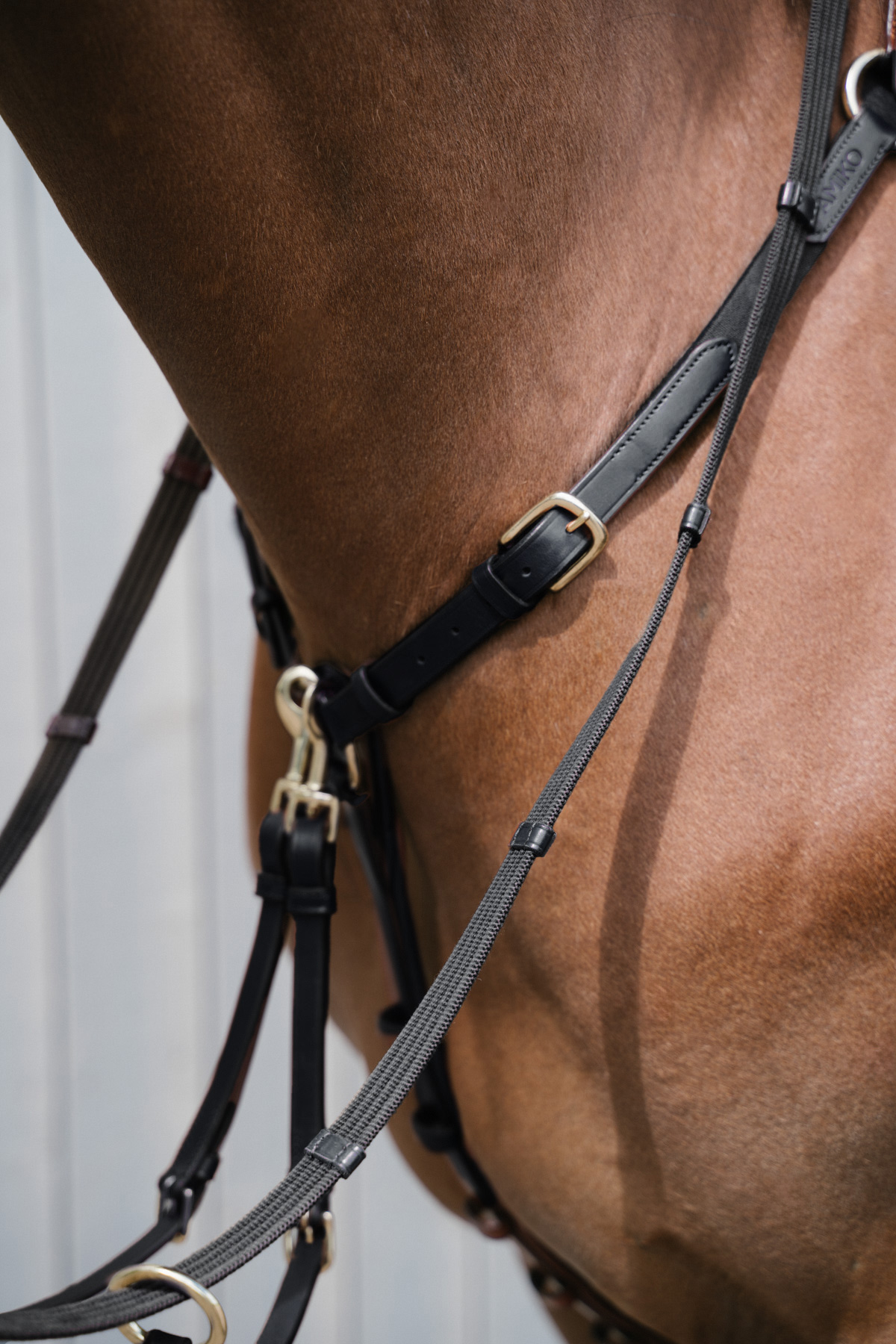 Amiko Classic Bridge Breastplate with Running Martingale Attachment, designed for superior control and comfort. Crafted from 100% premium leather.