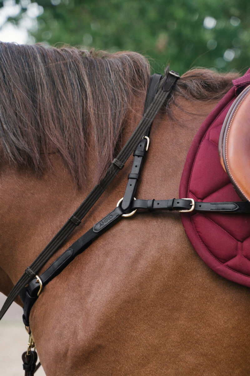 Amiko Classic Bridge Breastplate with Running Martingale Attachment, designed for superior control and comfort. Crafted from 100% premium leather.