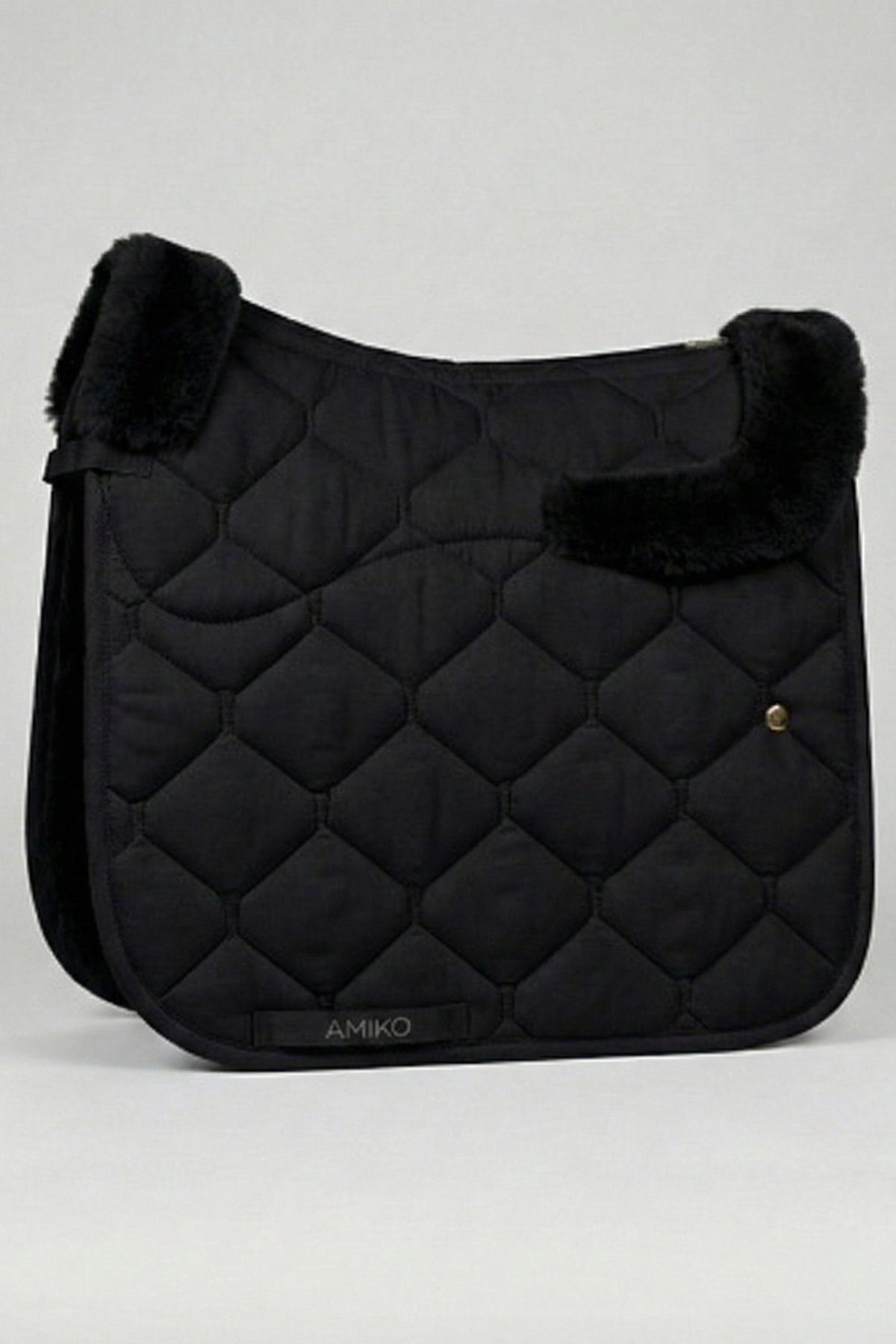 Amiko Saddle Pad Dressage All In One Wool W Fur, Black/Black