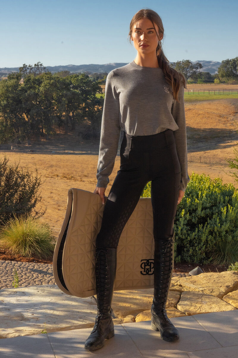 The ribbed crew neck collar adds a touch of refinement, while the slim fit design ensures a sleek, flattering silhouette. The contrasting PS logo on the chest showcases your commitment to both style and quality. Fully fashioned for a perfect fit, this sweater will quickly become a staple in your wardrobe, offering both functionality and timeless style for the discerning equestrian.