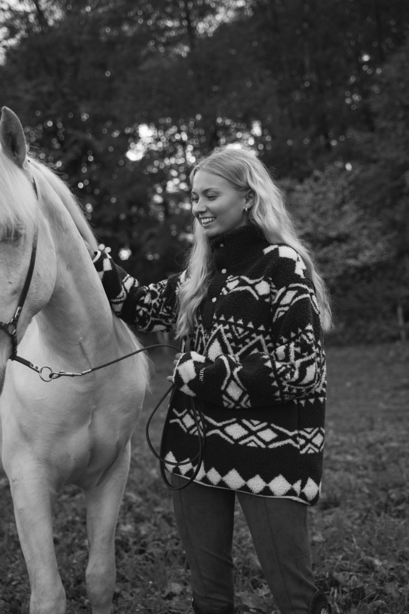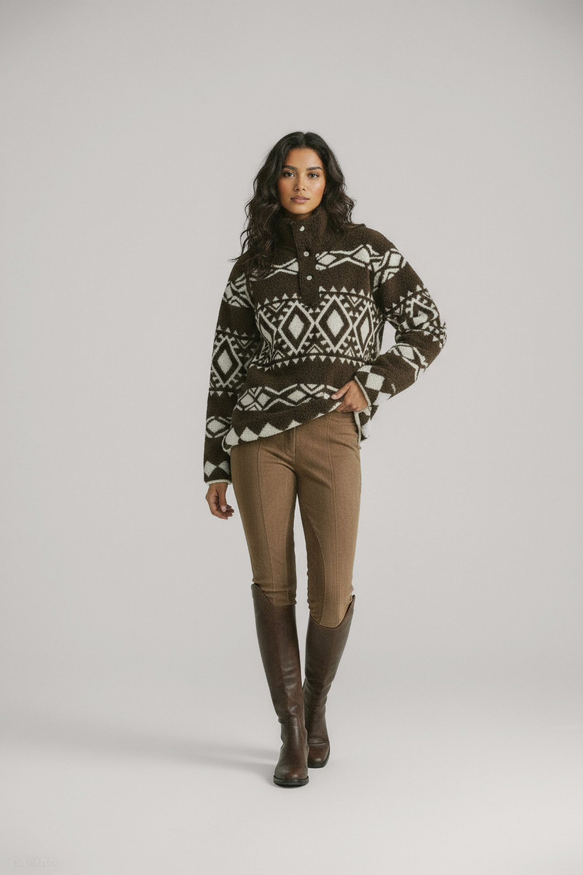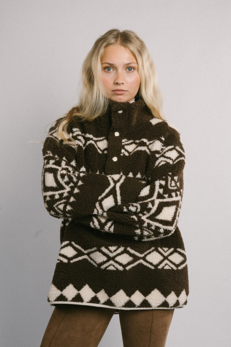 Featuring a beautiful pattern, the Dakota shirt adds a unique touch to any outfit. The high neck can be worn open as a relaxed collar or zipped up for extra warmth on chilly days, giving you flexibility no matter the weather. With its distinctive look and cozy exterior, the Dakota Shirt is sure to become a seasonal favorite.
