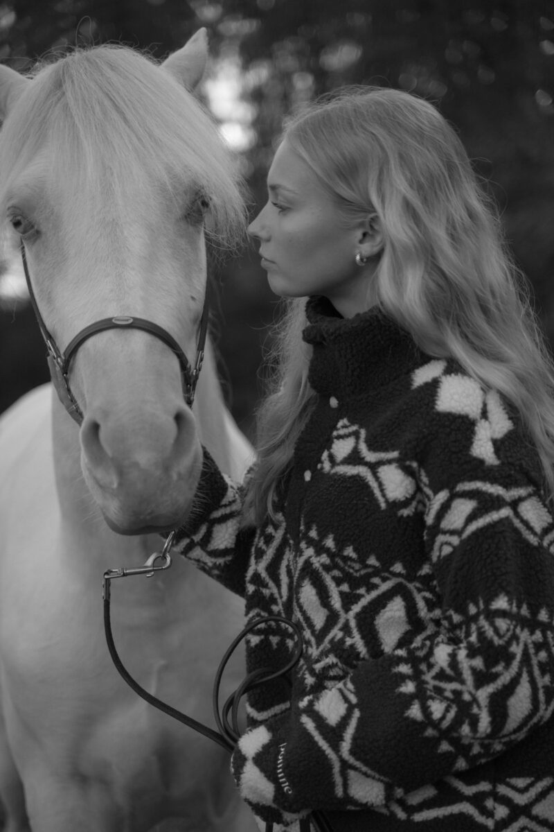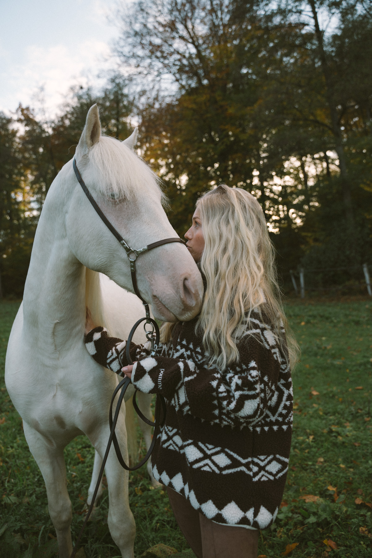 The sweater runs slightly large in size so if you find yourself between two sizes, we recommend choosing the smaller one. Please also keep in mind that the sweater is designed to have an oversized fit. If you prefer a less oversized look, we suggest sizing down.